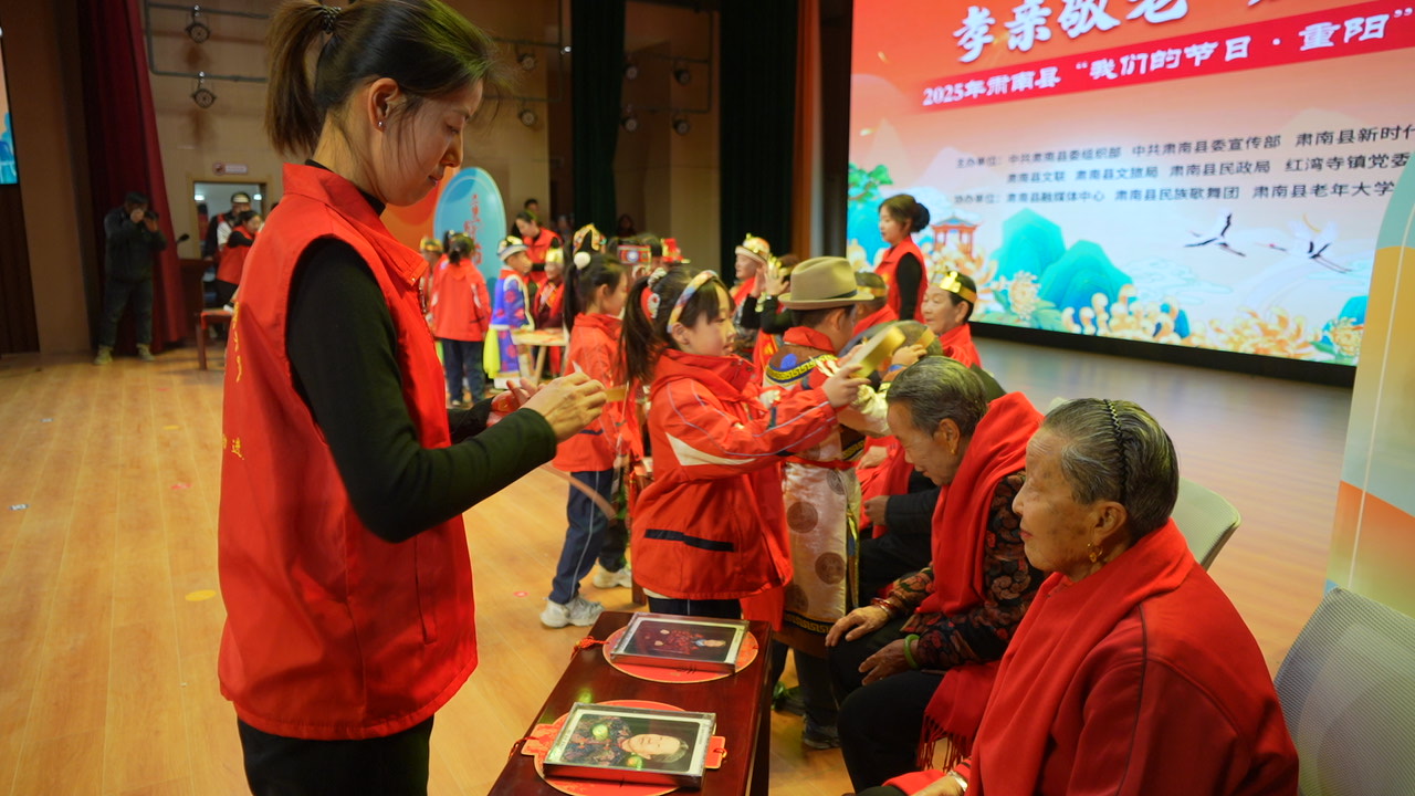 “祝您生日快樂!”隨著全場一起唱響生日歌,12位在9月至12月出生的老年壽星,在燭光里許下了心愿。紅灣小學(xué)的孩子們捧著親手畫的賀卡,一個(gè)個(gè)走到壽星面前送上祝福;志愿者和工作人員一起切開生日蛋糕,把甜蜜的關(guān)懷送到每位老人手上。現(xiàn)場還開展了 “我為鄉(xiāng)親拍張照” 作品交付活動(dòng)。據(jù)了解,縣文聯(lián)組織了20多位攝影家,走進(jìn)8個(gè)鄉(xiāng)鎮(zhèn),免費(fèi)為65歲以上老人拍照、制作照片,一共808幅,活動(dòng)現(xiàn)場由各鄉(xiāng)鎮(zhèn)工作人員帶回,用照片留住老人們的晚年美好瞬間。
