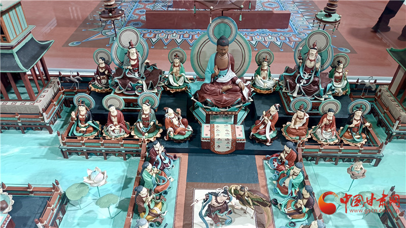 今年蘭洽會(huì)甘肅非遺館,正中央的敦煌文化題材《觀無(wú)量壽經(jīng)變》面塑受到客商全員追捧。經(jīng)過(guò)這里的人都會(huì)駐足欣賞,感受面塑藝術(shù)的精彩絕倫,其中,敦煌題材的面塑,飛天人物似乎從壁畫(huà)里飛了出來(lái),栩栩如生。