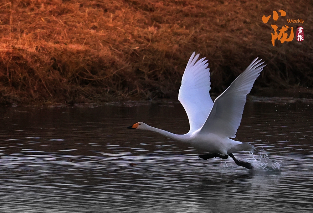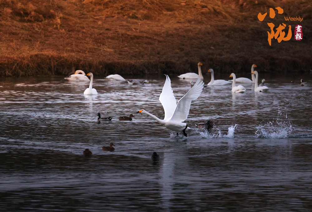 這里聚集了黑鸛、白鷺、鴛鴦、天鵝、赤麻鴨、灰雁等多種水鳥,它們?cè)邳S昏里愜意地游弋,或扎進(jìn)水里捕魚,或相互追逐戲水的畫面,既震撼又溫柔,成為攝影愛好者和游人爭(zhēng)相追逐的“冬日奇景”。