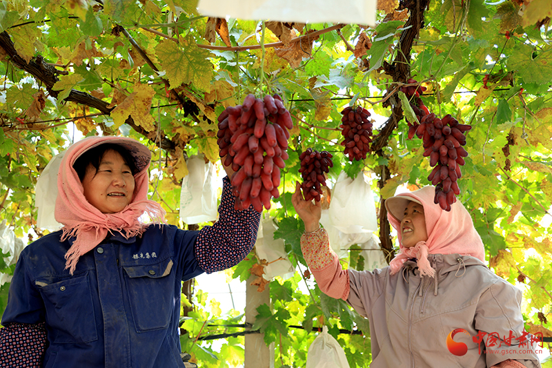“我們現(xiàn)在看到的這個溫室就是我們的延后葡萄,單棚的產(chǎn)量在3000斤左右。這個葡萄重點是采取延遲上市強制性休眠,推遲發(fā)芽時間,推遲上市時間,做好病蟲害的防治工作,還有就是增加葉片的光合作用,延遲葉片衰老,能夠把葡萄延后到春節(jié)。”臨澤縣銀先葡萄專業(yè)合作社生產(chǎn)部經(jīng)理宋國瑜介紹道。