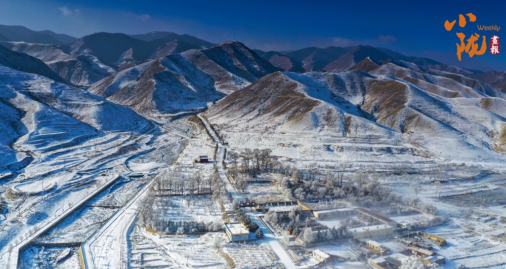 山下的屋舍靜臥于無邊的潔白中,淺藍(lán)天色漸次暈染,蒼灰山脊如墨筆勾勒,山川草木皆成了畫中疏淡的筆意,低訴著悠長的冬韻。