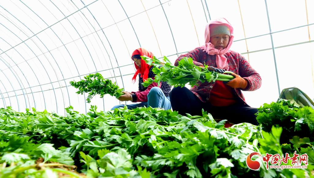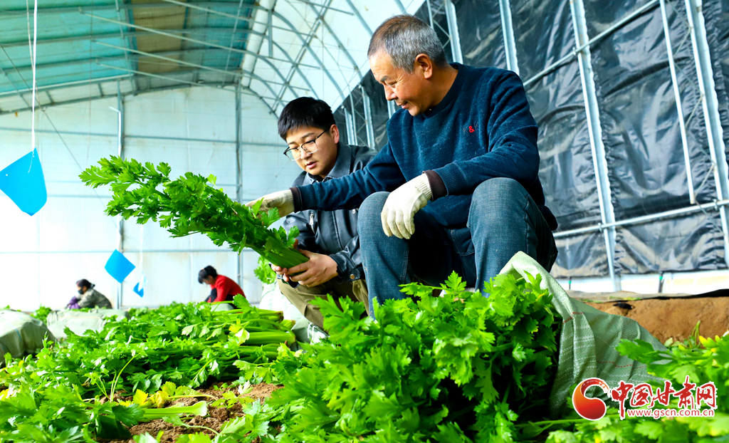 1月29日,臨澤縣鴨暖鎮(zhèn)古寨村的農(nóng)業(yè)大棚內(nèi),芹菜正值采收季。種植戶們忙著收割、打捆、裝箱,準備將這批新鮮蔬菜發(fā)往新疆、內(nèi)蒙古等地,保障冬季市場供應。