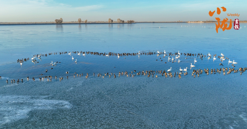 陽光斜照,萬物生暖。水面上,成群的白天鵝不緊不慢地游著,雪白的身影倒映水中,隨著微波輕輕蕩漾,像是一幅流動的水墨畫,素雅而安寧。